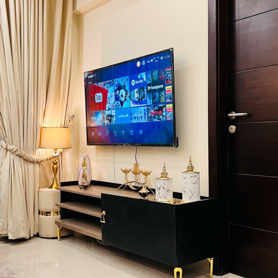 Stay in unmatched luxury at the Elysium One-Bedroom Apartment, perfectly positioned opposite Centaurus Mall, Islamabad. Enjoy modern amenities, elegant interiors, and stunning city views – the ideal choice for both short and long stays.